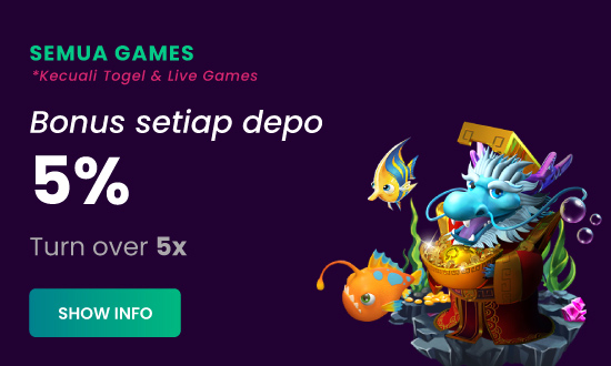 BONUS SETIAP DEPOSIT 5% KECUALI TOGEL & LIVEGAMES