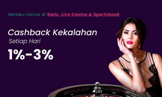 CASHBACK KEKALAHAN 1% - 3% SETIAP HARI SLOTS, LIVECASINO, SPORTSBOOK