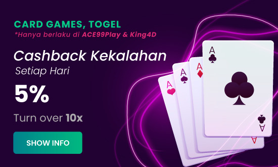 CARDGAMES & TOGEL – CASHBACK KEKALAHAN 5% (HANYA BERLAKU DI ACE99PLAY & KING4D)