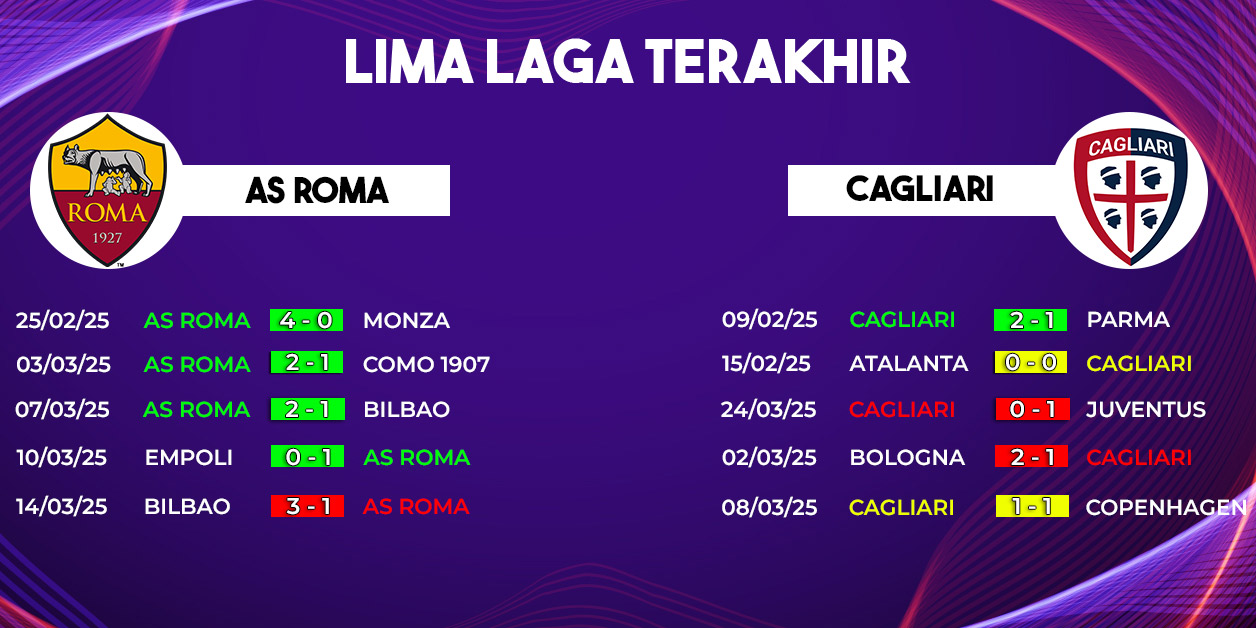 Rekor tandang Cagliari musim ini juga tidak terlalu menggembirakan. Dari 13 laga tandang, mereka hanya meraih dua kemenangan, empat hasil imbang, dan tujuh kali kalah. Catatan ini menjadi tantangan besar bagi Cagliari untuk mencuri poin di markas Roma.