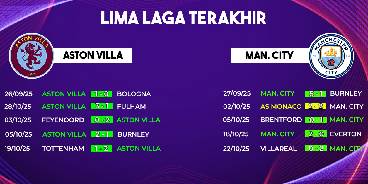 Menariknya, Aston Villa memiliki catatan pertemuan yang cukup baik dalam beberapa laga terakhir menghadapi City. Dukungan penuh dari suporter di Villa Park bisa menjadi dorongan ekstra untuk menciptakan kejutan.