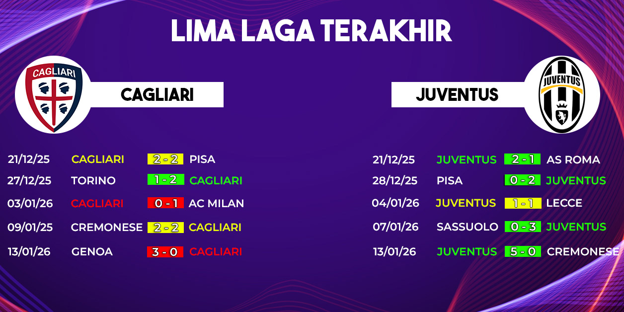 Jika Juventus mampu mencetak gol lebih dulu, pertandingan berpotensi berjalan satu arah. Dengan kepercayaan diri tinggi dan organisasi permainan yang matang, Bianconeri berpeluang mengamankan tiga poin penting dari Sardinia.