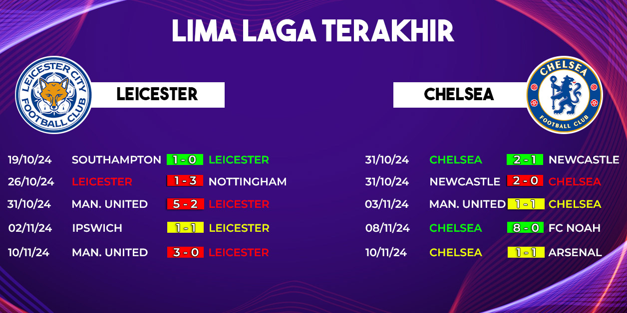 Melihat rekor pertemuan, Chelsea memiliki catatan yang lebih baik dibandingkan Leicester dalam beberapa musim terakhir. Namun, King Power Stadium kerap menjadi tempat di mana Leicester tampil mengejutkan. Laga ini diprediksi akan berlangsung ketat, dengan kedua tim berupaya menguasai lini tengah untuk menciptakan peluang.