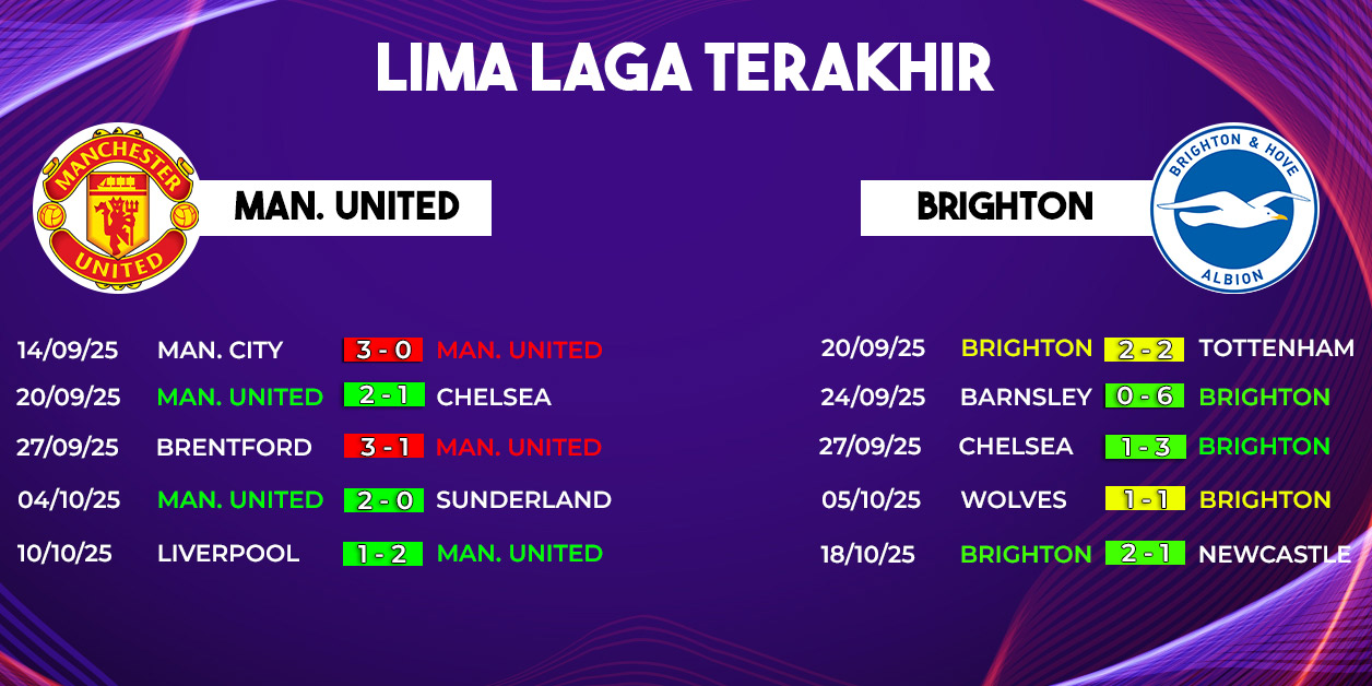 Meski performa MU mulai membaik, mereka tetap harus mewaspadai catatan buruk saat menghadapi Brighton. Dalam tujuh pertemuan terakhir di Premier League, MU hanya menang sekali dan kalah enam kali. Statistik ini menjadi bukti bahwa Brighton selalu punya cara untuk menyulitkan Setan Merah.